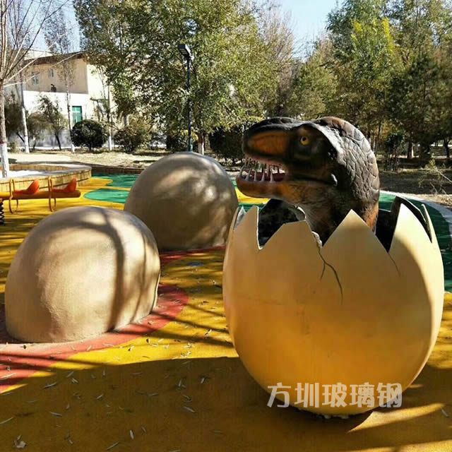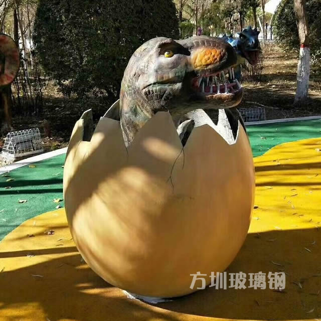 動物園恐龍蛋玻璃鋼雕塑制作工藝:雕刻泥稿-泥稿確認-模具制作-產(chǎn)品毛胚制作-表面效果處理-包裝。